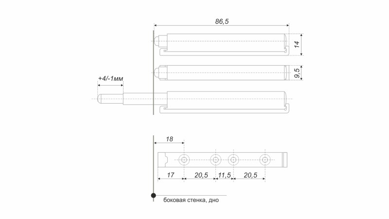 Упор-защёлка для открывания и закрывания фасадов без мебельных ручек с помощью нажатия. Механизм предназначен для шкафов с распашными фасадами и совместим с любыми петлями без амортизатора.