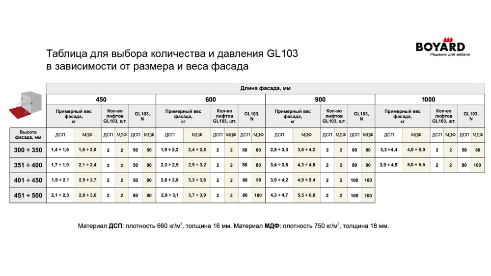 Секретерный газовый лифт GL103 предназначен для открывания фасада вниз. Модель обеспечивает плавное и мягкое движение фасада при открывании. В комплекте поставляются сменные кронштейны: для установки на фасады из массива дерева, плитных материалов (ЛДСП / МДФ) и на фасады с алюминиевыми рамками. Секретерный газовый лифт GL103 предназначен для эксплуатации в отапливаемых помещениях, но может транспортироваться при низких и высоких температурах: от -20°C до +70°C.