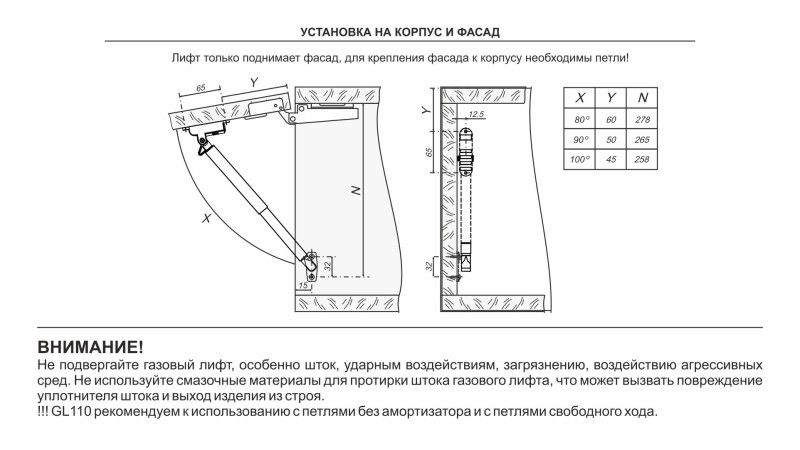 GL110 рекомендуется устанавливать в комбинации с петлями BOYARD без амортизатора или петлями свободного хода.