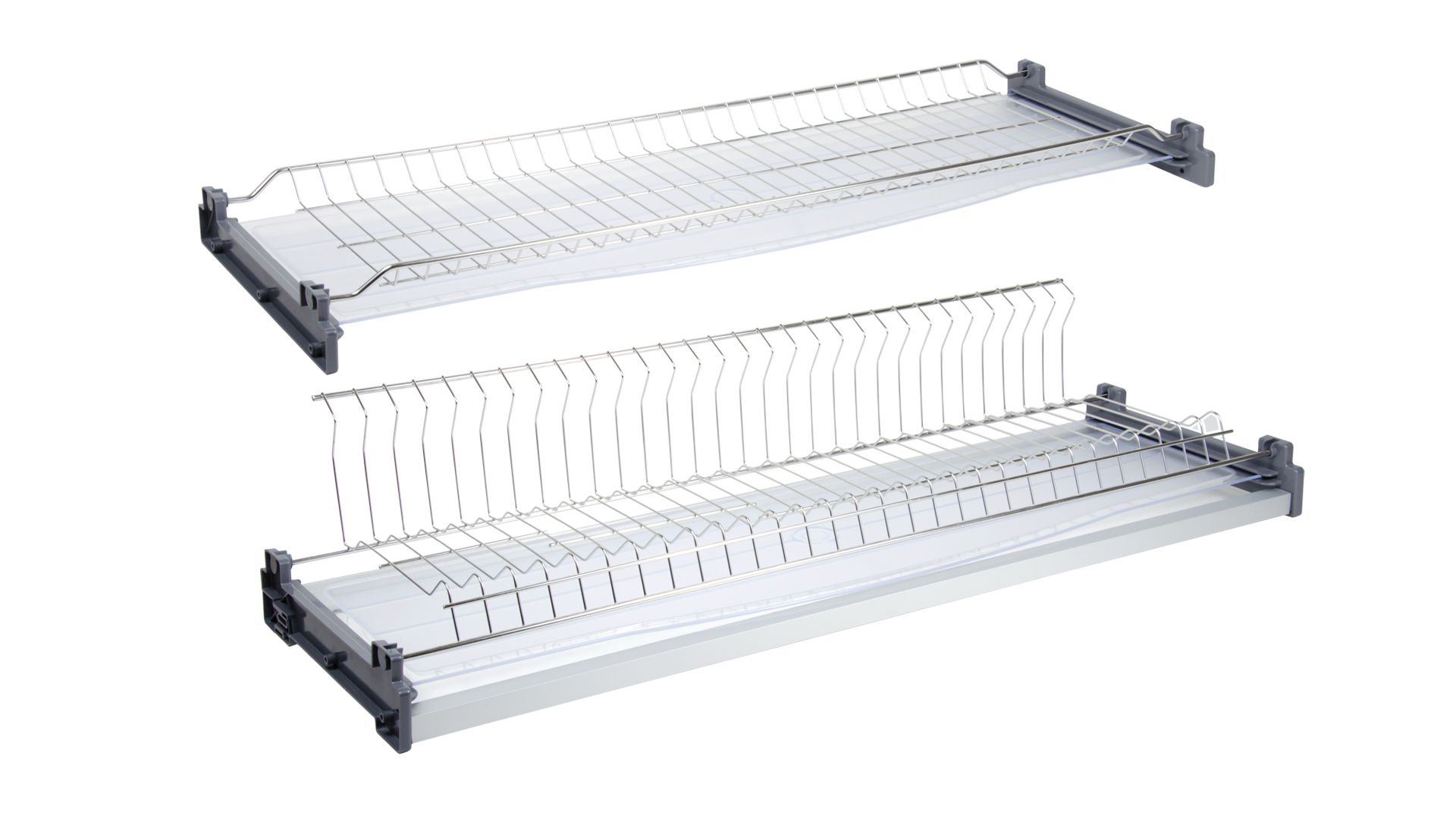 Конструкция LORA SU06 позволяет полностью интегрировать сушку с верхней базой мебели и отрегулировать её по глубине в мебельном коробе. Пластиковые держатели нижнего яруса и алюминиевая трубка имеют специальный паз для установки задней стенки мебельного короба. Полезное пространство под сушку по глубине варьируется в диапазоне от 320 до 370 мм. Выдвижной элемент в составе пластиковых держателей нижнего яруса даёт возможность отрегулировать положение сушки до задней стенки в пределах 50 мм.