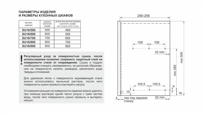 Полезное пространство под сушку по глубине варьируется в диапазоне от 305 до 370 мм.