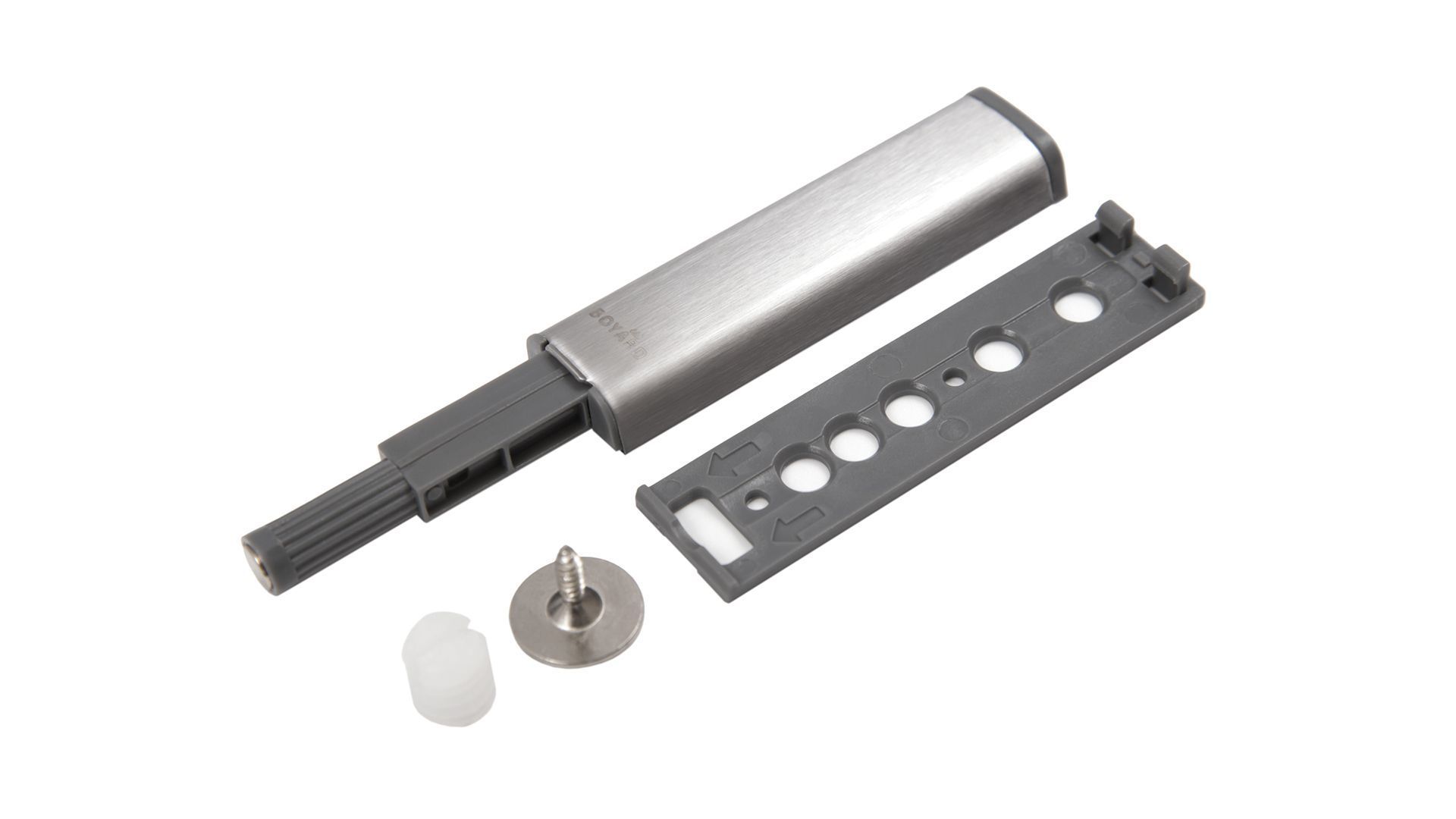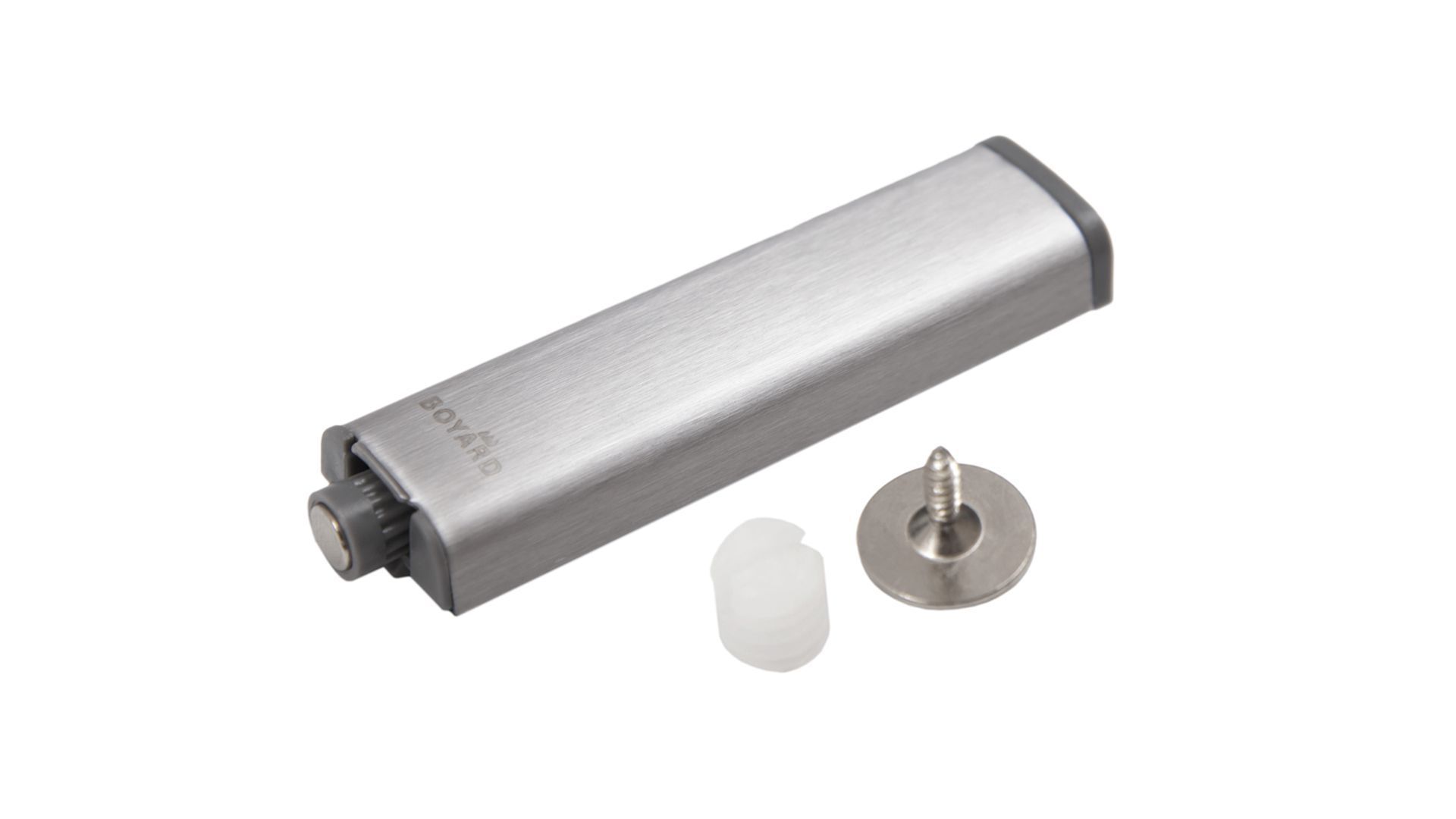 Толкатель АМF13 позволяет открывать и закрывать фасады без мебельных ручек с помощью легкого нажатия, а магнит удерживает фасад от резкого полного открытия. Аксессуар станет безупречным тандемом для петли с пружиной обратного хода Н690.