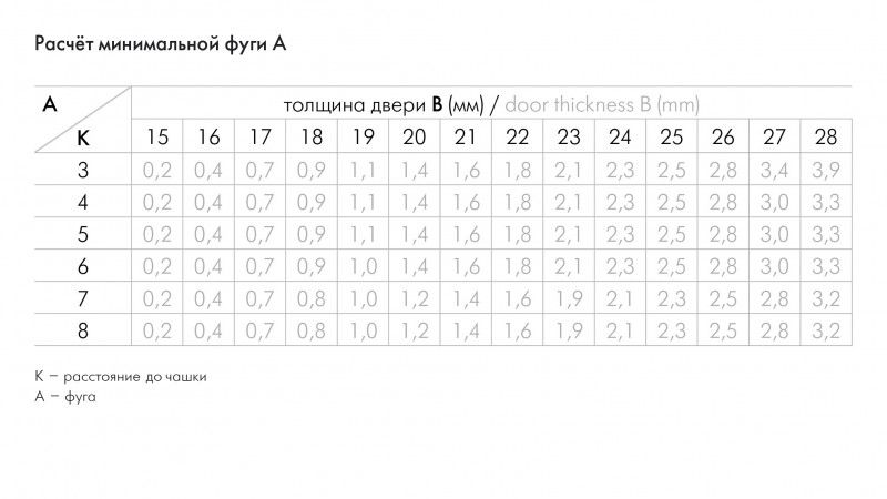 Как и другие представители линейки NEO модель Н319 является конструктором: ответные планки к петле подбираются исходя из индивидуальных монтажных значений. Для Н319 созданы две монтажные планки разной высоты — Н5912 и Н5914. Они индивидуальны для петли EXTRA Н319 и не подходят к другим моделям линейки NEO. Монтажные планки Н5912 и Н5914 приобретаются отдельно исходя из толщины фасада и боковины корпуса, значения «К» (расстояние до чашки) и ряда других параметров, которые высчитываются по формулам для петель типа А, В и С (формулы размещены в карточке товара).